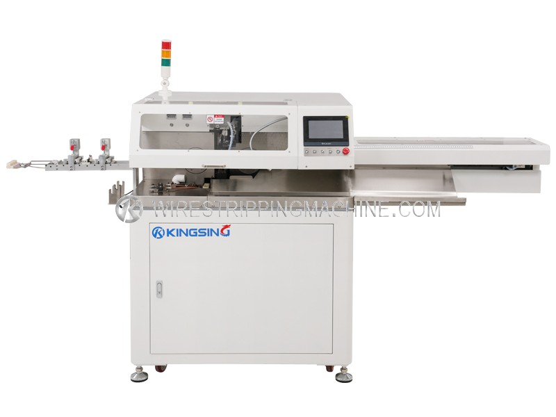 This is a high-precision servo type double-sided wire stripping and tinning machine, which integrates the functions of wire cutting, wire stripping, twisting, and tinning. It supports simultaneous processing of multiple wires, and the speed of processing 8 wires at a time can reach 12,000 wires per hour, with high production efficiency. In addition, the split wire function can be selected to support the processing of double wires.