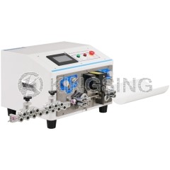 The special cutter frame design supports the installation of 2 sets of blades at the same time, the outer sheath is stripped with a round blade, and the core wire is stripped with a flat blade. It is especially suitable for processing sheathed wires with less than 4 cores and an outer diameter of less than 6.5mm. The core wire supports full stripping and half stripping. The outlet wheel has the function of automatic pulley. When stripping the wire head, the outlet wheel can be lifted up automatically to reduce the resistance of the wire stripping. The maximum stripping length of the wire end can reach 120mm. Color touch screen operation interface, cutting wire length, stripping length, feed depth, retraction, output and other parameters can be freely set in the program.