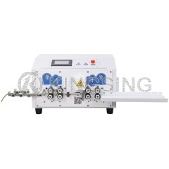 This machine has the function of automatic jumping conduit and lifting wheel, that is, when stripping the tail of the wire, the inlet conduit will automatically lift up to avoid it, and the outlet wheel will automatically lift up to avoid it when stripping the end of the wire. Therefore, the stripping length range of wire tails is greatly expanded. The pressure of the wire feeding wheel can be adjusted through the knob, and it is also equipped with a wire feeding wheel gap adjustment knob and a wire straightening device, which has comprehensive functions and is affordable.
