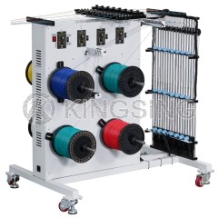 The Eight Station Wire Spool Prefeeder KS-W2258S feeds the wire gently and continuously to the active wire storage, while the intake of the fully automatic wire harness processing machine takes the wire out of the storage in order to further processing, the wire is led under constant tension for trouble-free feeding. It features 8 wire feeding reels which driven by 8 independent motors, each of the 8 reels can work individually, the speed and rotating direction of each motor can be adjusted freely. Both loose wire and reel wire are applicable for this machine. Thanks to this wire prefeeder, it is possible to run the fully automatic wire harness processing machines at a high speed without worrying about the feeding capacity.